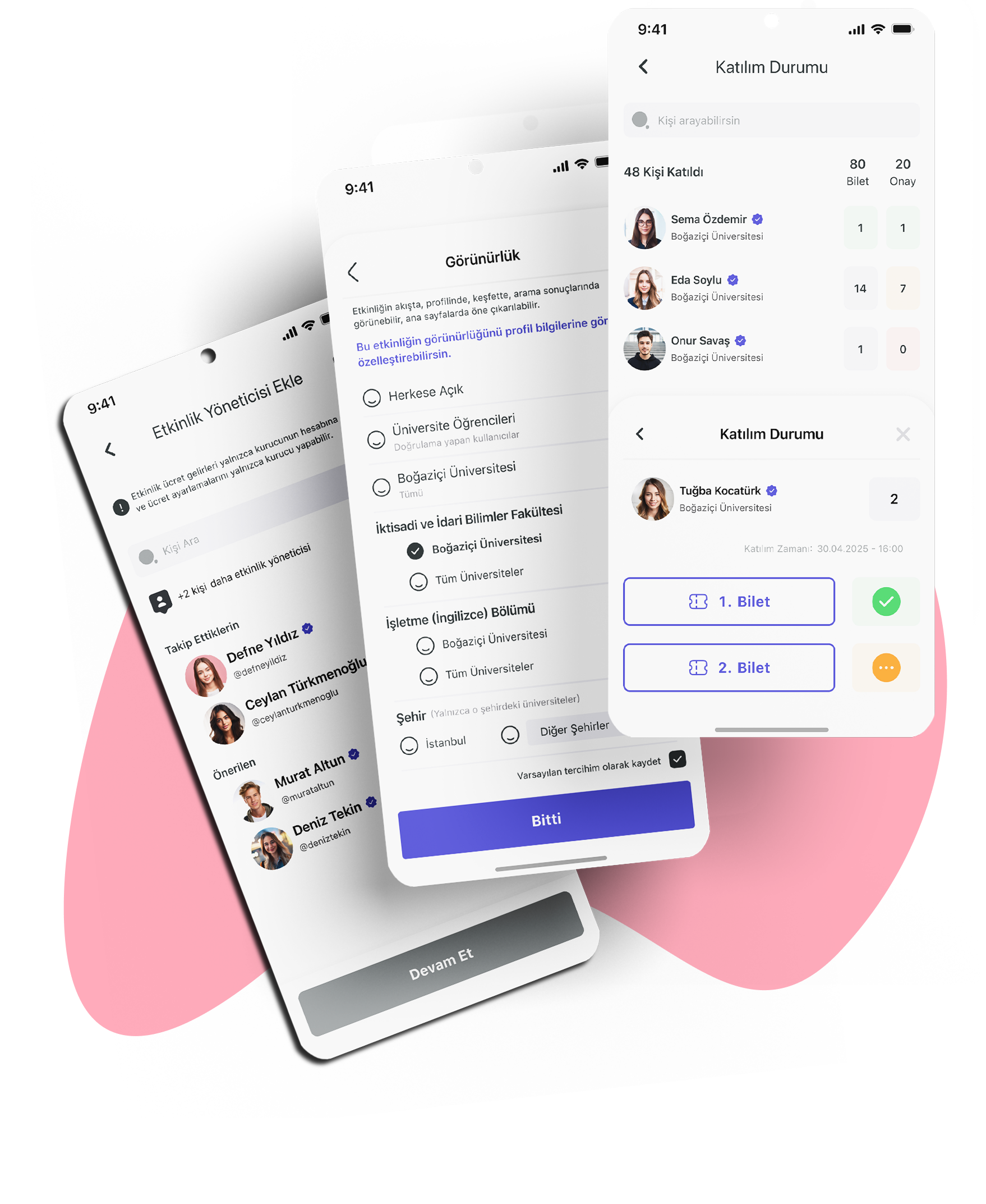 Biletleme, katılımcı yönetimi, QR kod ile giriş