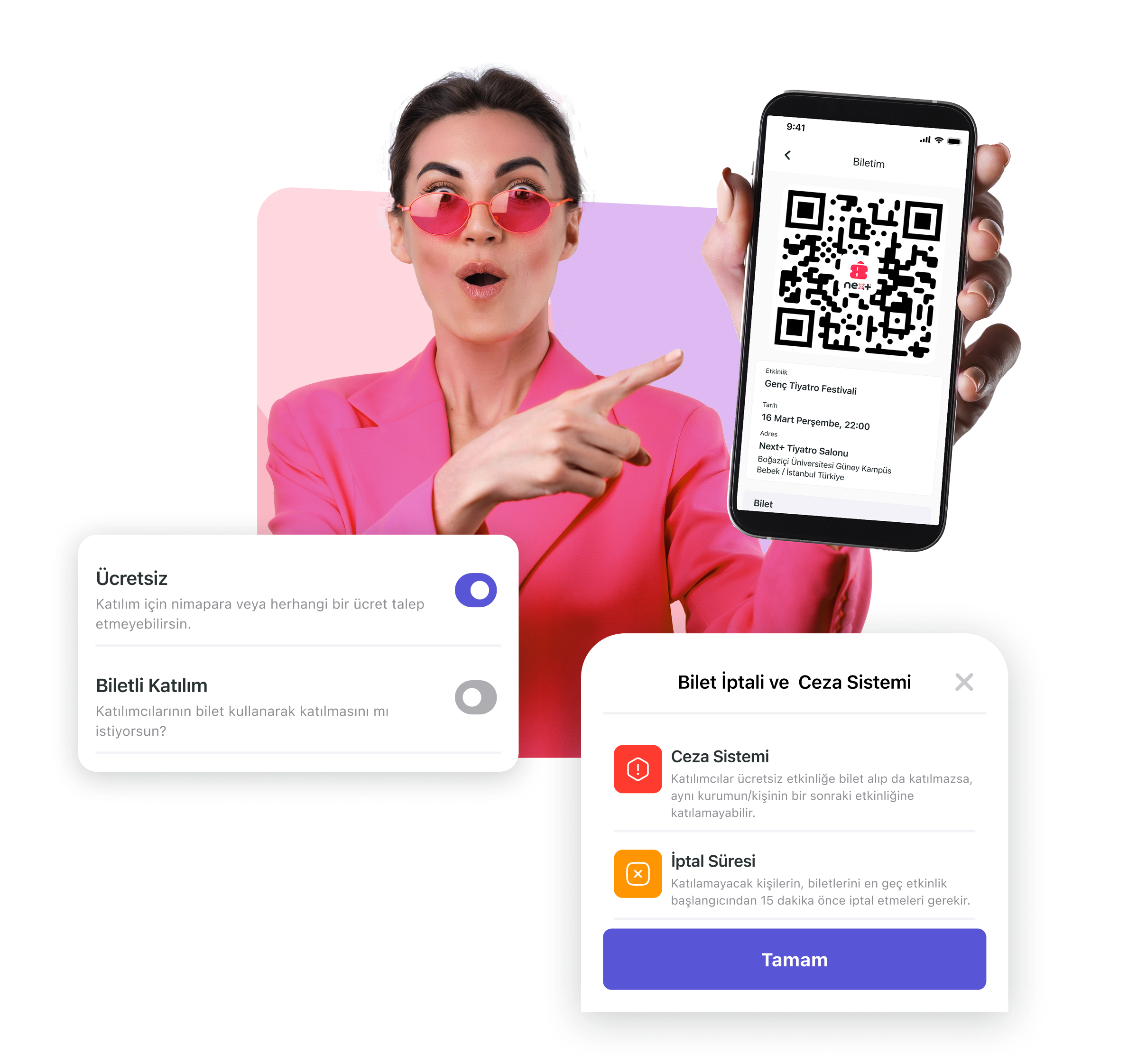 Biletleme, katılımcı yönetimi, QR kod ile giriş